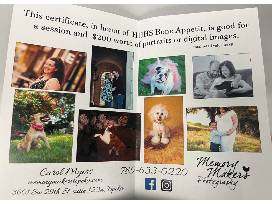 This package comes with a photography session from Memory Makers, with $200 worth of portraits or digital images! For some added flair, Carol Myers has made a felt garland of dog bones and decorative wool balls to spice up your mantlepiece!