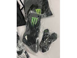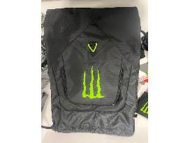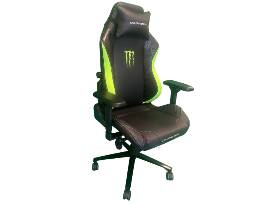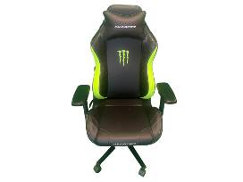 This brand-new gaming chair is DX Racer brand and features the Monster logo. It's 52 inches tall and 28 inches from arm to arm, allowing a roomy and comfortable feel while you do e-sports! It comes with a DX Racer chair pillow, is on nice wheels, and has many customizable levers so you can get just the right fit.
