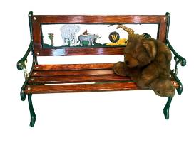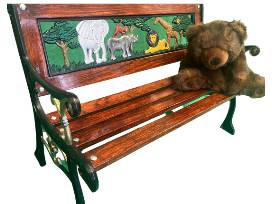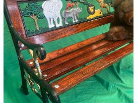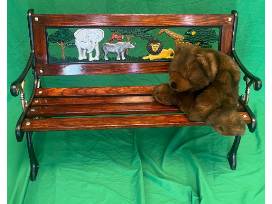 Photos simply do not do this piece justice! Handcrafted children's bench with iron working, carving, real wood, and paint/varnish. It's truly a stunning gift to the animals to donate this item to the auction and we are so excited for whoever wins this piece to display toys on or use for your children!