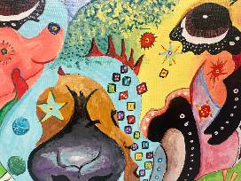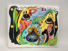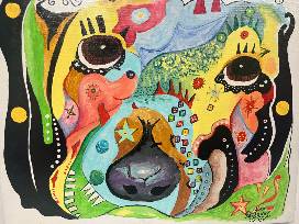 This glorious 16x20 inch acrylic canvas painting is in the style of Dean Russo! This is a hand-painted dog portrait created by local artist and author Charles Moore.
