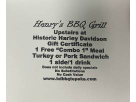 - 4 combo meal tickets to the Black Dog BBQ (at the Historic Harley Davidson Museum), valued at $10 each, donated by the Black Dog BBQ