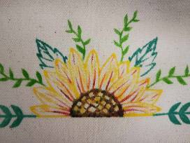 - Zippered canvas bag with interior pocket with handpainted sunflowers by local artist Torey Oberle