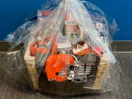 **Miscellaneous Cleveland Browns shirts, socks, blanket, games, Christmas ornaments, & book**