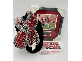 Bucky Badger fans will love this package! Add this autographed 8x10 photo of former Wisconsin Badgers running back JONATHAN TAYLOR to your "Go Big Red" collection. See Bucky in action with five of your closest friends as the Wisconsin Badgers take on the South Dakota Coyotes on Saturday, Sept. 7 at Camp Randall. Plus, one lucky lady will don a spectacular "Snow Top & Red dyed Rex Rabbit Knitted Fur Scarf with Rosette Flower".