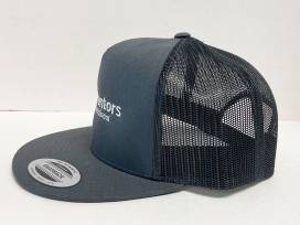 30Show your support for Mentors International year-round by wearing one of our signature hats. Gray and Navy Trucker hat with a broad front and a plastic mesh at the back.