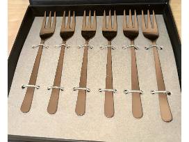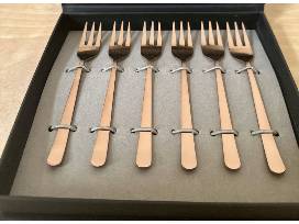 Made of stainless steel with a matte copper finish. Includes two (2) salad servers and six (6) cocktail forks. Ideal for serving salads, appetizers, and desserts. Dishwasher safe and easy to clean.