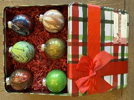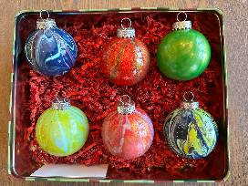 Looking for a special gift this holiday season? Look no further than our two boxes of six personally crafted ornaments each. These ornaments are not just decorations, they are expressions of joy and festivity. They will brighten up any tree or home with their sparkle and cheer. Don't miss this opportunity to get these amazing ornaments for yourself or your loved ones.