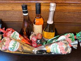 What could be better than a girls' night with this amazing basket? You'll get to enjoy three delicious Rose' wines, from sparkling to fruity, along with some tasty snacks. Pop some gourmet popcorn, savor some Ferrero Rocher chocolates, and keep your wine fresh with the cute silicone stoppers. This basket has everything you need for a cozy and fun night with your besties. The wines are Avissi Sparkling Rose, Sonoma - Cutrer Rose of Pinot Noir, and Finca Nueva Rosado.19.