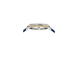 Ferragamo Blue Croc-Embossed Leather Strap Watch, 35mm, offers elegant style with a silvertone sunray dial featuring contrast goldtone indexes and hands.