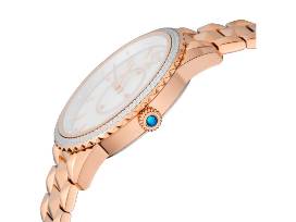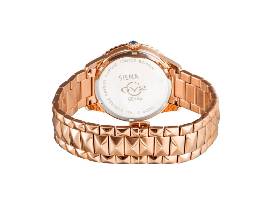 1GEVRIL Women's Siena Mother of Pearl Dial Stainless Steel Watch in rose gold. Dial Color: White MOP - Strap Material: 316L stainless steel - Case Material: 316L stainless steel - Movement: Swiss Quartz - Crystal: Antireflective Sapphire - Closure: Deployment Buckle - Diamond Count: 4 at 0.0044 ctw - Case Diameter: 38 mm - Case Thickness: 9 mm - Battery - Water Resistance: 3 ATM (30 Meter, 9 Feet) - Made in Switzerland