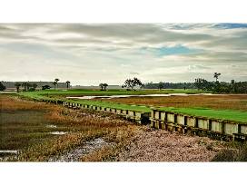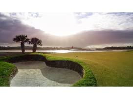 Pete Dye and his son P.B. did the early routing of Secession, but when they left in a dispute with the developer, Bruce Devlin, a PGA Tour veteran who'd previously designed courses with Robert von Hagge, stepped in and finished something much in keeping with the then-prevailing Dye philosophy of low profile architecture. Greens were set at ground grade, protected by low humps and pot bunkers with vertical stacked-sod faces. Still, Devlin invariably left open the fronts of greens for running approach shots. The site itself is a peninsula in marsh, with several holes on individual islands. Secession demands a complete game, both aerial and ground, particularly in steady ocean breezes.