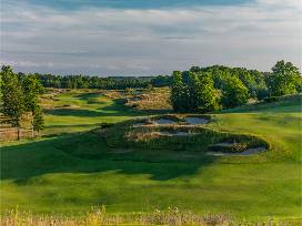 Expertly routed across glacial domes and over kettle holes, Kingsley Club opens with a split fairway, a high-right avenue separated from a low-left one by a cluster of sod-face bunkers. It's an attention grabber than is repeated in various fashions throughout the round. For instance, the hilltop green on the short par-3 second seems tiny in comparison to the deep shaggy bunkers surrounding it. The long par-3 fifth plays over a valley with a tongue of fairway ready to repel any shot that comes up short. The par-4 sixth seems to slant in one direction, then cant in the other direction once past a lateral ridge that runs down the fairway.