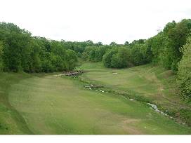 The course meanders through diverse terrains, including marshlands, woodlands, limestone canyons, and prairies, offering golfers a dynamic and picturesque setting. Notably, the opening hole, named "George Washington," features a dramatic 130-foot drop from the tee to the fairway, setting the tone for a round filled with strategic challenges and breathtaking views.