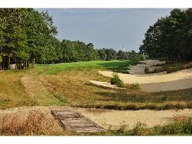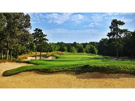Galloway National occupies a very fine stretch of South Jersey-pine barrens, a site that before construction had been compared to nearby Pine Valley. But Tom Fazio felt the land more favorably compared with that of Pinehurst, and his dream was to reshape this course the old-fashioned way, using horses and slip-scrapers much as had been done a century ago at Pinehurst. But the economics and timetable didn't allow him such a fanciful luxury. Instead, bulldozers were used to shove the sand around into graceful fairways and low-slung, fall-away greens. Pines and roughs of pine needles frame most holes and the eastern flank of the course runs directly along a tidal marsh that leads to the Atlantic. Galloway National now has enough exposed sand, by the way, that golfers today are reminded of both Pinehurst and Pine Valley.