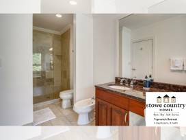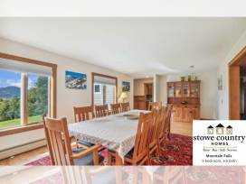 This five (5) bedroom, three and a half (3.5) bathroom home, sleeps 16 and is close to the amenities of Stowe yet tucked away with access to private community trails for hiking, including one that follows the waterfalls on the property! Screened in gazebo, outdoor infrared grill, and hot tub add to the enjoyment. Off the kitchen is a billiards room and large living area with gas fireplace. The primary ensuite bedroom is on this main level. Four more bedrooms are located on the upper level next to a large den with TV. Enjoy the picturesque mountain views out the windows or out on the large deck.