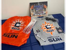 • Connecticut Suns WNBA team-signed photo and team branded goody bag, which includes sunglasses, keychain, pen, card holder, t-shirt, and pen & pencil case.