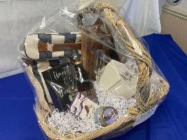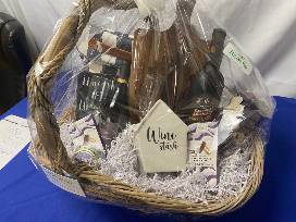 This beautiful basket includes a bottle of Cabernet Sauvignon, wine cooler, glasses, chocolate, wine stash bank, lavendar candle, wine charcuterie board and potpourri.