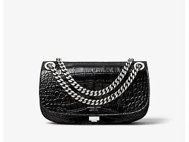 You'll be Runway Ready when you doan the Christine Runway Handbag from Michael Kors Collection. Crafted in Italy from crocodile embosed leather the coveted Christie bag is cut in a slim envelope silhouette and features a chain link strap.