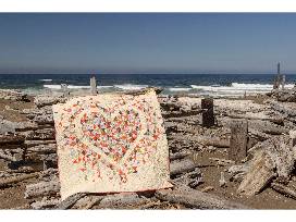 0Made by award-winning quilter, photographer and maker Diane Costello of Half Moon Bay, CA., this hand-made quilt is made from 100% Cotton, top and back, with Poly batting for extra warmth, and measures 64" x 64".