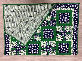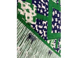 Show off your 4-H pride with this animal themed 4-H quilt. It features a green, navy, and white design and measures 52" x 38".