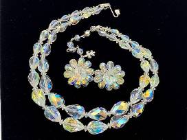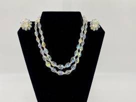 1Vendome brand aurora borealis glass double strand choker & earrings set.