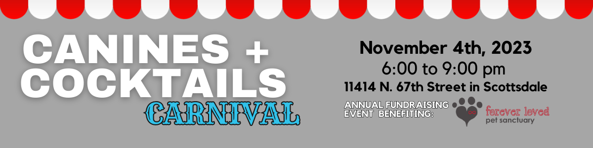 Canines + Cocktails is back! This time....A carnival theme! Let's eat, drink & save more senior dogs!