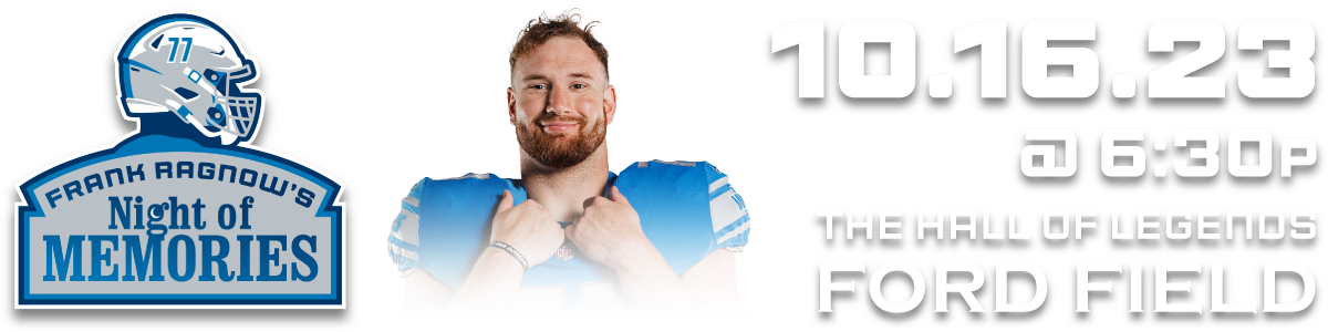You can still participate in the auction!Please join us for Frank Ragnow's Night of Memories, a dinner hosted by Frank and his Detroit Lions teammates on Monday, October 16th at the Hall of Legends at Ford Field.
