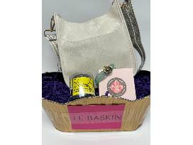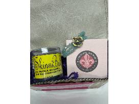 0Contained in this basket is a french Kande multi-row crystal bracelet with a brass medallion. French Kande jewelery is always plated in silver & gold or brass. They are hand made of semi-precious stones or freshwater pearls and each piece has its own sentiment and each charm, its own significance.