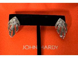 This set of John Hardy sterling silver earrings is designed to depict a bamboo leaf and was creating using a Balinese jewelry making technique.