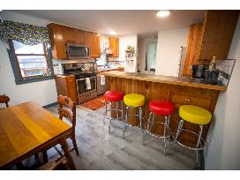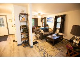 The house has been recently renovated and includes custom kitchen cabinetry, beautiful matching backsplashes in the kitchen & bathroom, all new appliances. Kitchen comes fully stocked with utensils, pots & pans, brand new toaster, coffee maker and tea kettle. The bedroom has a Twin XL over Queen custom bunk bed (the kids will love cuddling in the top bunk, parents will appreciate the accessible safe stairs on the side of the beds!) and at night you can spot fireflies through the window while reading bedtime stories to the kids. There is a sofa bed in the living area, a lift top coffee table, and a cozy game & puzzle space with a 43" ROKU t.v. and a vinyl record player with albums. Out back there is a picnic table as well as a firepit for post adventure s'mores!