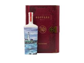 The ceramic bottle for Bootleg Vol. IV features Lighthouse in Maine, 2017 by Bob Dylan inside a handmade leather journal.