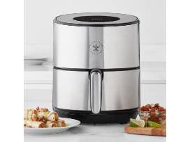 This electric air fryer cooks your favorite fried foods with 88% less fat and 65% fewer calories. Use one of the 8 preset menu options for automatic cooking at the touch of a button or set your own time and temperature to air fry everything from chicken to fresh vegetables to packaged frozen foods.