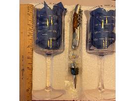 Have fun enjoying your favorite wine in these stemmed beaker glasses. Includes wine opener and stopper.