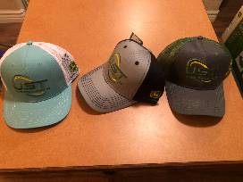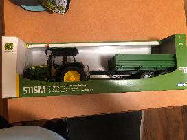 John Deere 5115M 1:16th scale tractor with dump bed trailer, and 3 John Deere/UST hats.