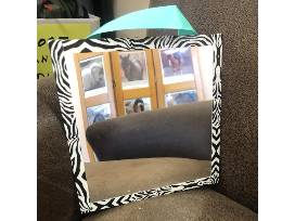A small handmade mirror with duck tape frame