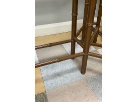 Glass top dining table with brown painted bamboo look base 38"W x 28.75"H x 72"L