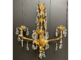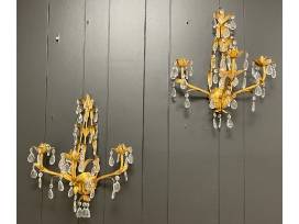 Pair of gold wall sconces with crystals 3 candle 19"H x 16"W