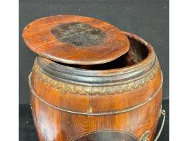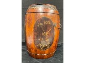 Vintage wood barrel with removable lid stenciled design 18" x 14"