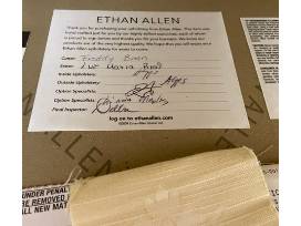 Ethan Allen featherblend camel back sofa with 2 pillows and back cushions 38"D x 70"W x seat height 21 back height 38