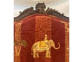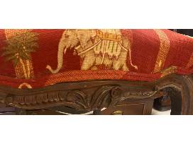 Small child size side chair with elephant design upholstry carved detail 19"W x 17"D x 36"H at back 17.5"H seat