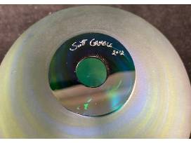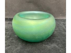 Green handblown glass bowl signed by artist Scott Gamble 2012. 5.5"H x 7.5"W