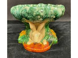 Ceramic bunny bowl in majolica design 12.5"W x 6.5"H