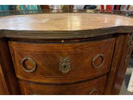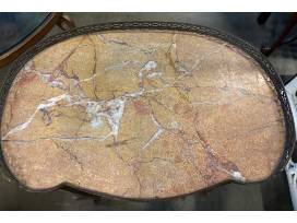 Vintage French cameo table with marble top, brass rail & 2 drawers. Early 1900s. 31"H x 24"W x 16"D