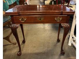 Statton Private Collection game table with one drawer. $899 on Ebay. 29"Hx32"Wx32"(open) 16"(closed)