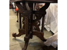 Vintage, heavily carved table with granite top 28.5"W x 21"D x 30"H