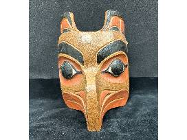 North American Indian art Tlingit Eagle Head from Ketchikan Alaska. A tribal symbol of determination. Carved & painted wood. 12" x 7.5"