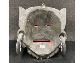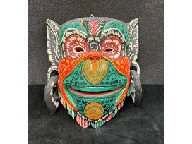 Balinese Barong mask, wood carved wall hanging 7.5"H x 7.5"W