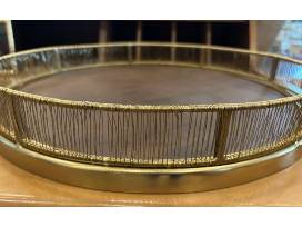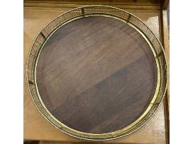 Round wood & brass decorative tray, 16" round
