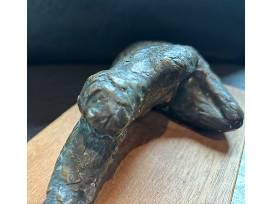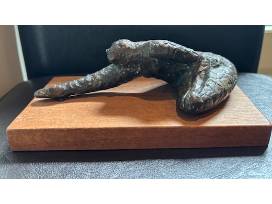 Metal sculpture on wood base McIntire carved in base 8.75" x 4.5"