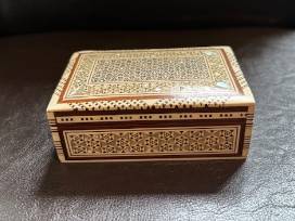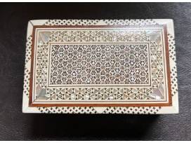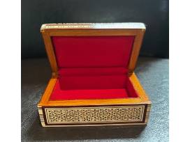 Small wood jewelry box with mother of pearl inlay 4.5" x 2.5"